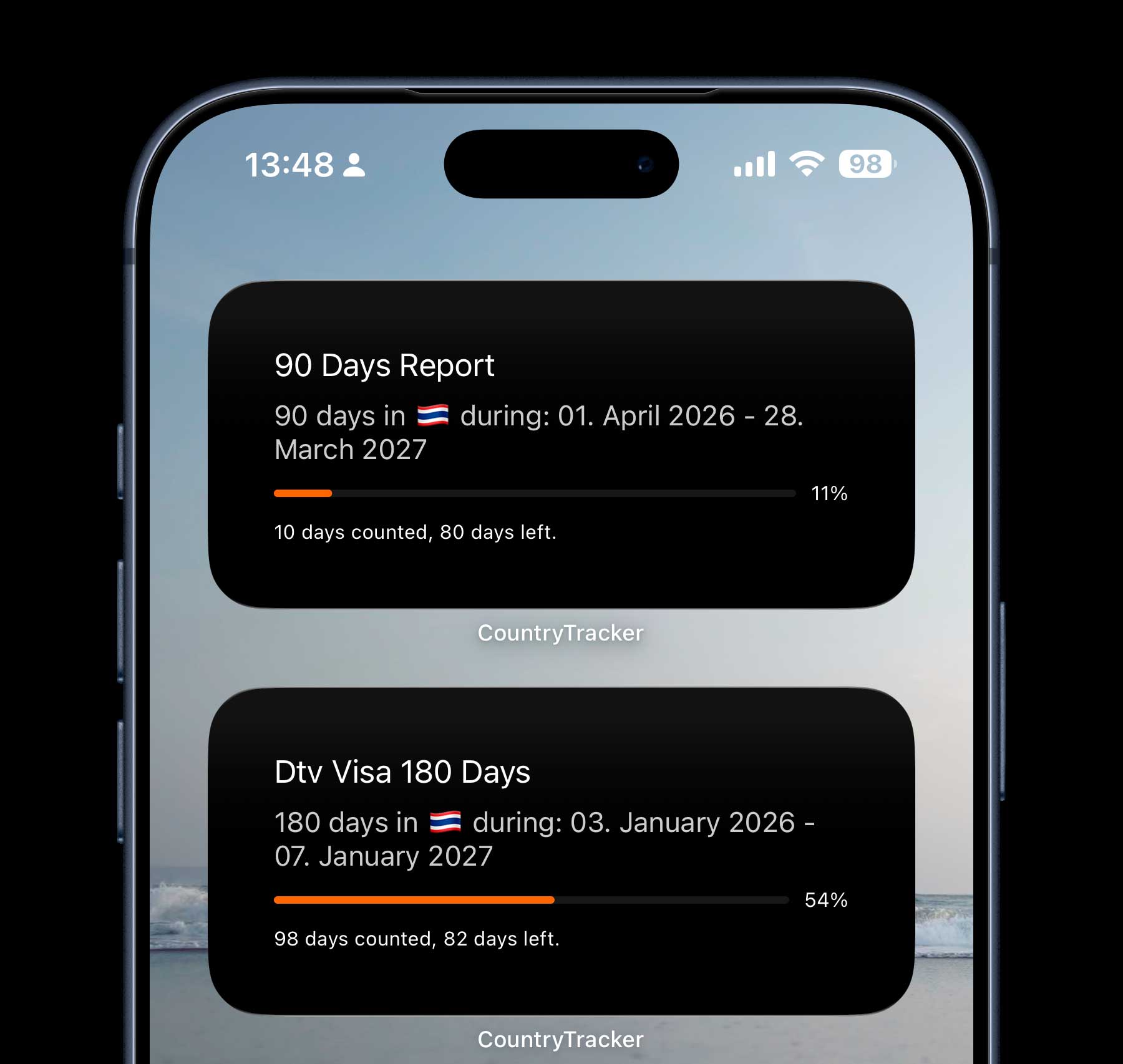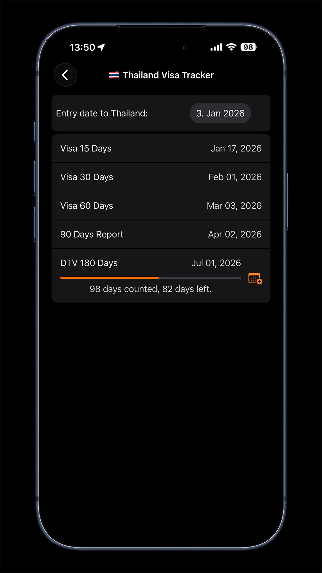 Если вы живёте в Таиланде по визе DTV или любой другой долгосрочной визе, Country Days Tracker значительно упрощает подсчёт дней. Вместо ручного контроля вы можете доверить это приложению.